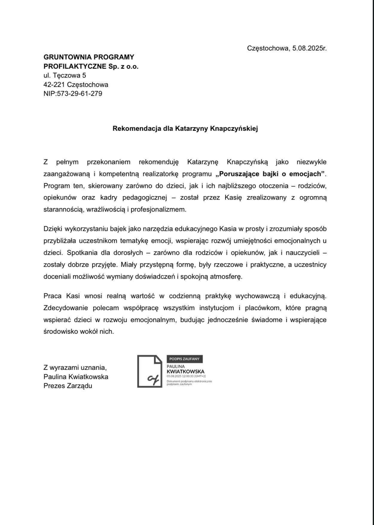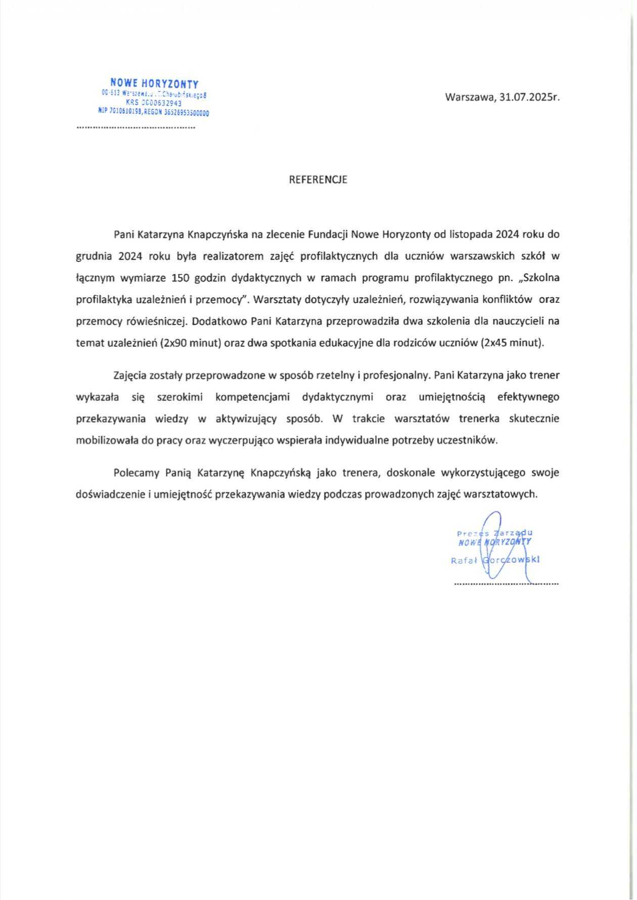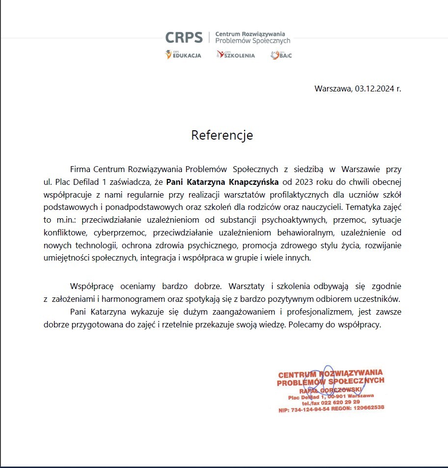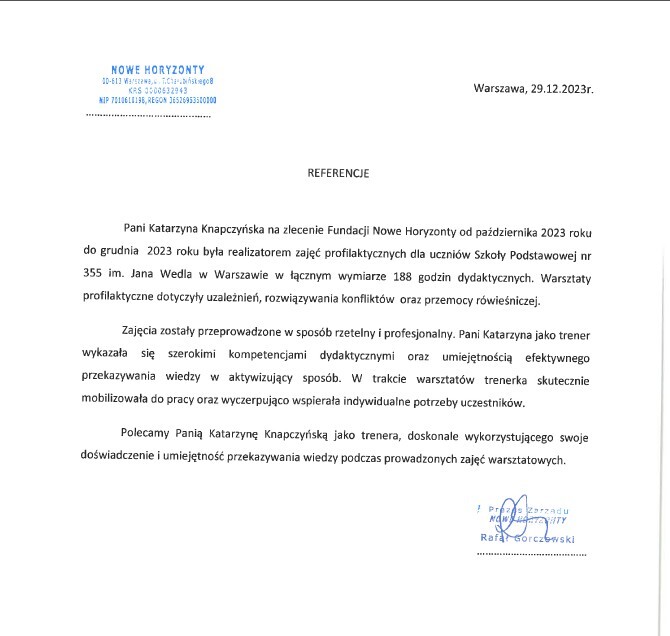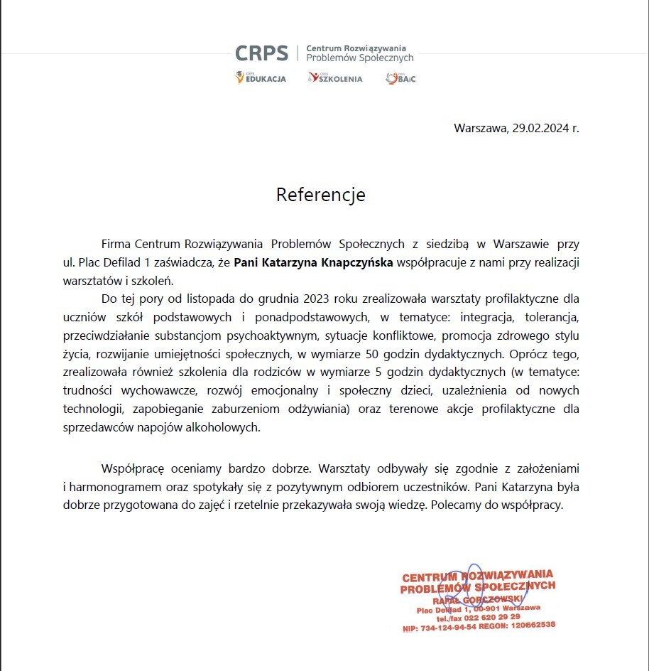 Dodatkowo zapraszam do zapoznania się z moimi referencjami: